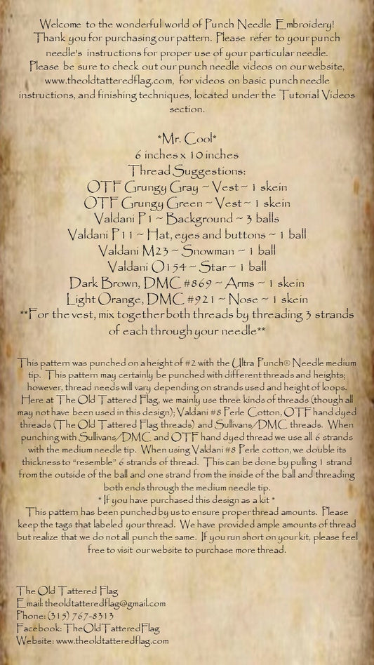 Punch Needle Pattern - Mr Cool by Old Tattered Flag