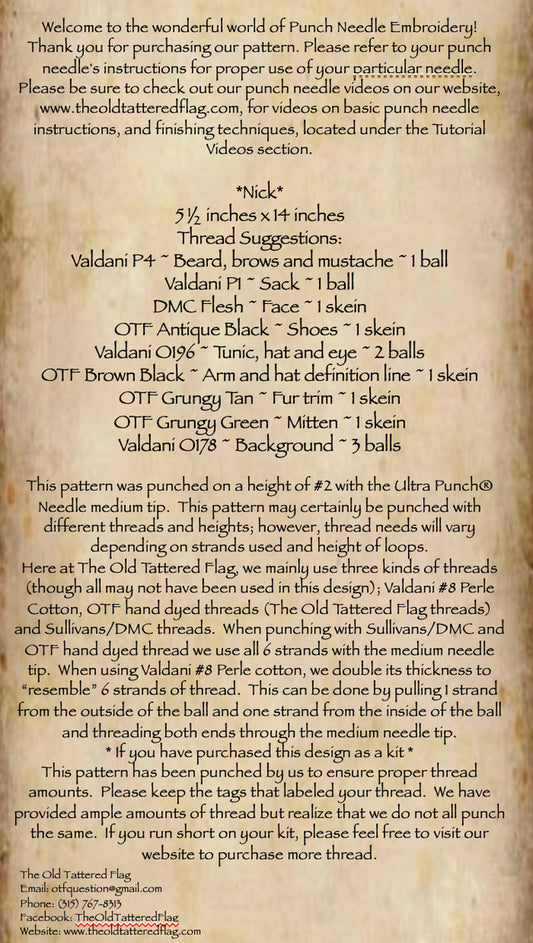 Punch Needle Pattern - Nick by Old Tattered Flag