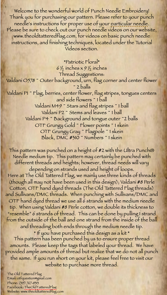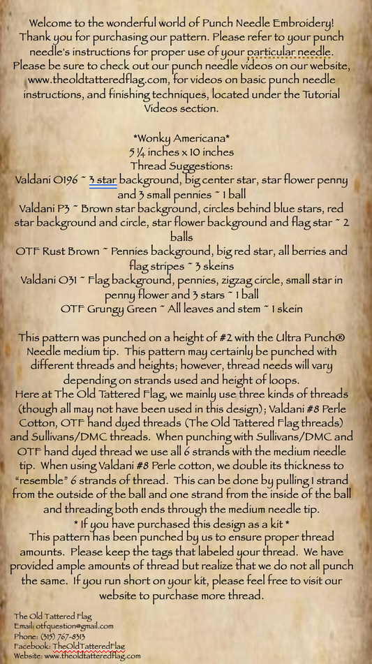 Punch Needle Pattern - Wonky Americana Old Tattered Flag