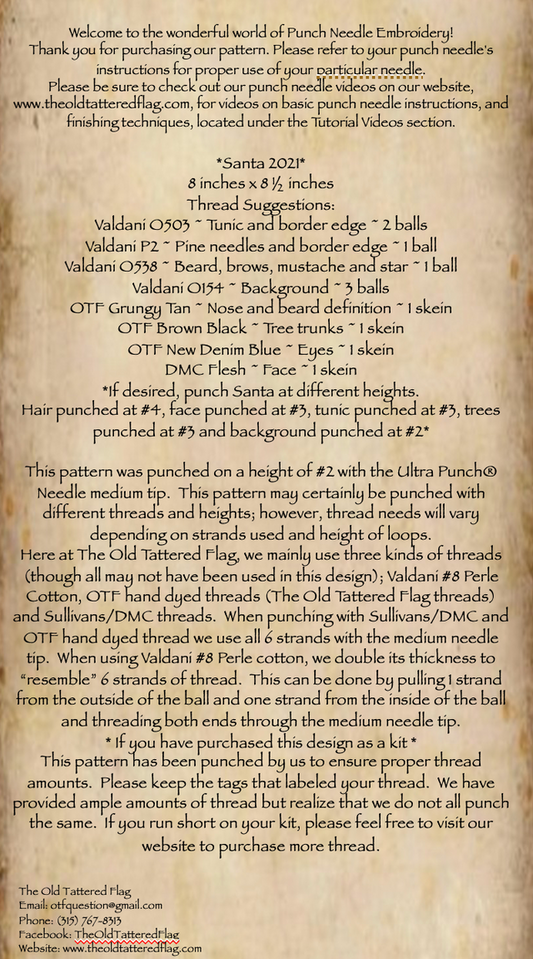 Punch Needle Pattern - Santa 2021 by Old Tattered Flag