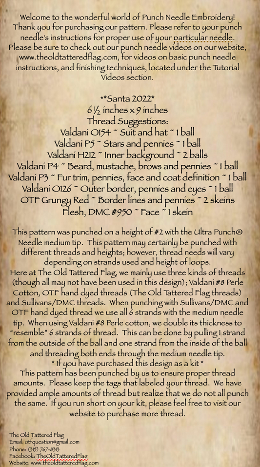 Punch Needle Pattern - Santa 2022 by Old Tattered Flag