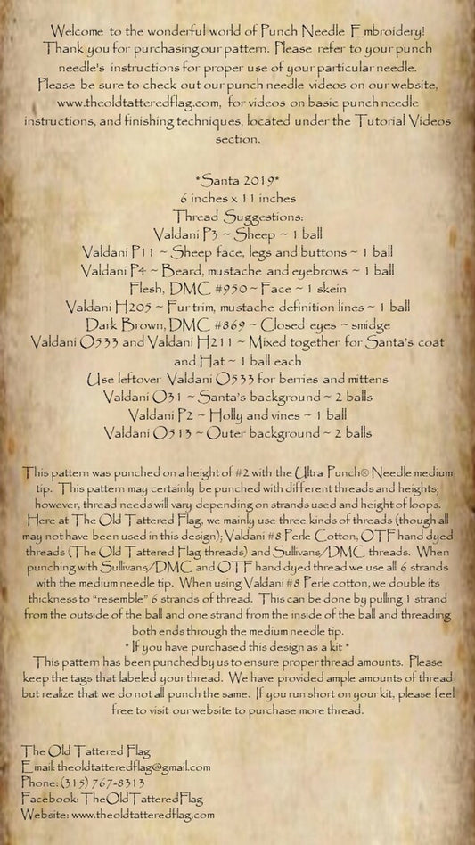 Punch Needle Pattern - Santa 2019 by Old Tattered Flag