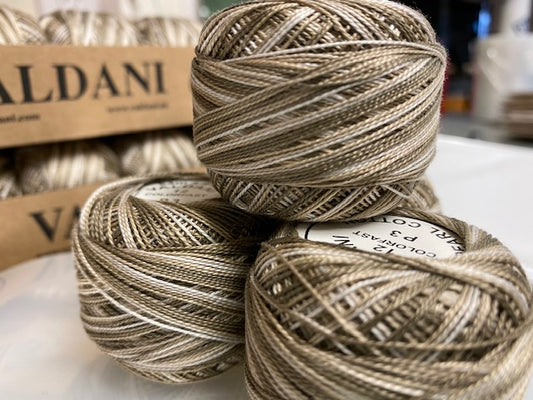 Valdani Perlé Cotton Variegated: O512 - Chimney Dust - earth beiges, medium dusty browns, washed tans